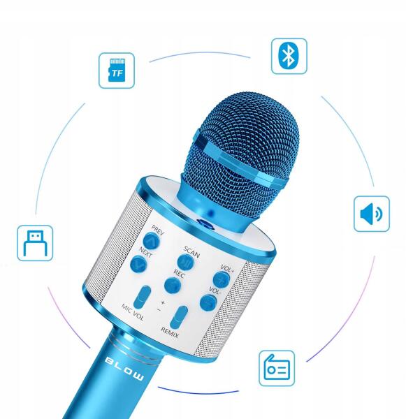 Kék Karaoke Mikrofon Gyerekeknek A gyerekeinek felejthetetlen pillanatokat biztosítson tele szórakozással, énekléssel és végtelen művészi élményekkel a Kék Karaoke Mikrofon Gyerekeknek. Ez a mikrofon kifejezetten azoknak a kis énekeseknek készült, akik otthonuk kényelmében sztárok akarnak lenni. Ideális ajándék, amely minden gyerek arcát felderíti. Ergonomikus kialakítás: A Kék Karaoke Mikrofon Gyerekeknek a legfiatalabb felhasználók igényeinek figyelembevételével készült. Könnyű és tartós szerkezete könnyen elfér a gyerekkézben. Beépített fényhatások: A mikrofon színes LED fényekkel van felszerelve, amelyek a zene ritmusára pulzálnak, így minden előadásnak csodálatos hangulatot teremtenek. Kiváló hangminőség: Játékos megjelenése ellenére a Kék Karaoke Mikrofon Gyerekeknek tiszta és minőségi hangzást nyújt, amely felér a professzionális mikrofonokkal. Egyszerű kezelés: A mikrofon néhány gombbal könnyen kezelhető, amelyek intuitívak és a gyerekek igényeihez igazodnak. Így a gyerekek